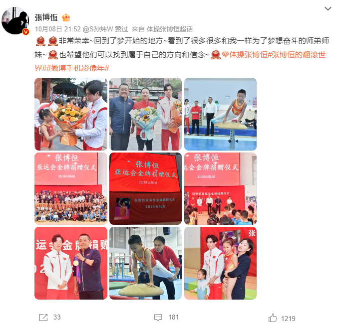 在捐赠仪式现场,张博恒表示:“金牌不是我一个人努力的结果,在学校的时候,得到了大家特别多的帮助,我才取得如此优异的成绩。正所谓‘吃水不忘挖井人’,让这份荣誉回归到母校。”