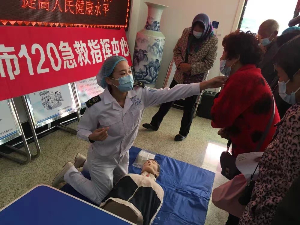 冯嘉巍向民众讲解急救知识。图片来源:新华网