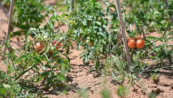 乌兰布和试验基地的治理沙地上生长着几十种瓜果蔬菜。图片来源:新华社