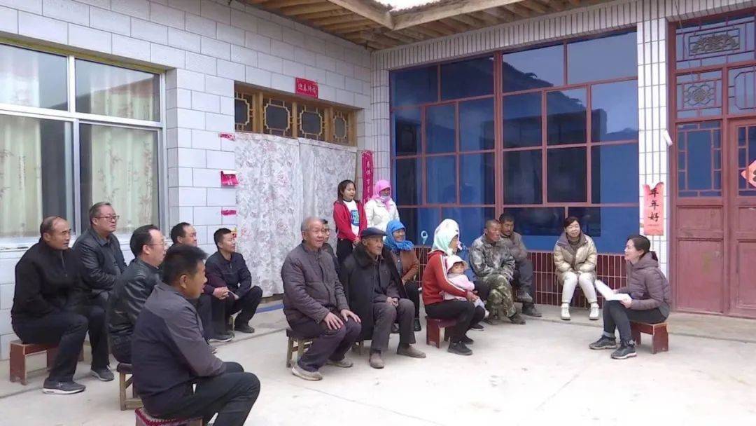 姜莉玲(右一)向群众宣传退耕还林政策。图片来源:武威日报