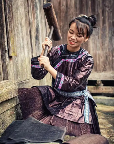 杨成兰在锤打土布。图片来源:多彩贵州网