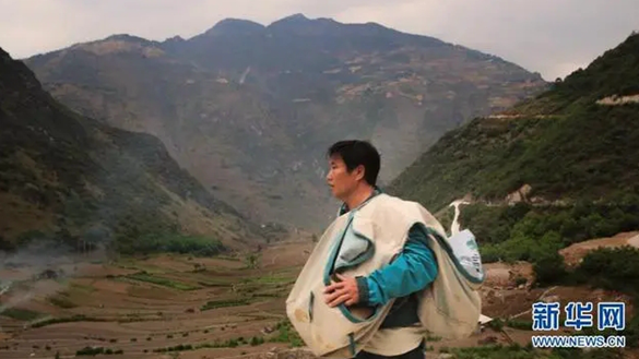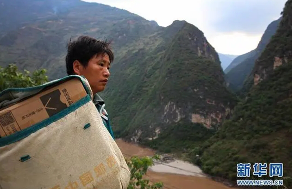 桑南才徒步在高山峡谷间送邮件。图片来源:新华社