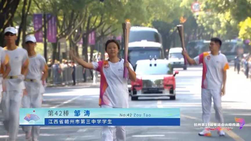 邹涛作为第42棒火炬手在绍兴传递杭州亚运会火炬 图片来源:中国日报网