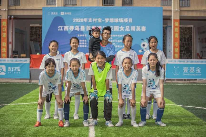 澄江中心校女足队,后排左一为邹涛 图片来源:中国日报网