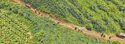 村民走在通往果木村前胡种植基地的山路上。何志刚摄(人民视觉)
