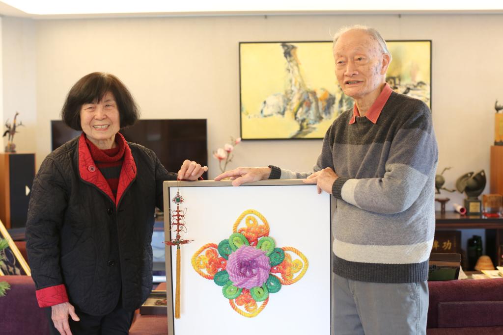 “春节的中国结,最好用红绳制作,简单的结子可以做吉祥结、盘长结,复杂的结做‘四季如春’‘春到人间’。”85岁的台湾结艺家陈夏生说。